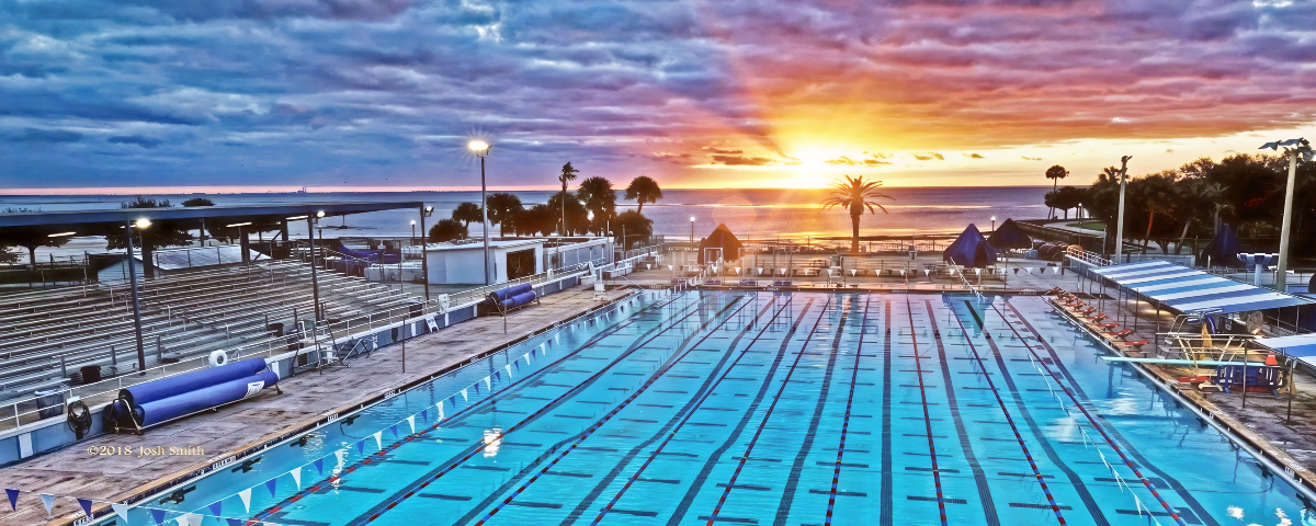The St. Pete Masters home facility is the North Shore Aquatic Complex located in beautiful downtown St. Petersburg. Boasting a 50 meter x 25 yard pool and a 25 meter x 25 yard pool with stunning views of Tampa Bay, the complex is open year-round with both pools being heated and cooled to an average temperature of 81-82 degrees. St. Pete Masters has 11 coached workouts available each week, but registered USMS members may use the pool facility anytime it is open to the public as well as the assigned practice times.