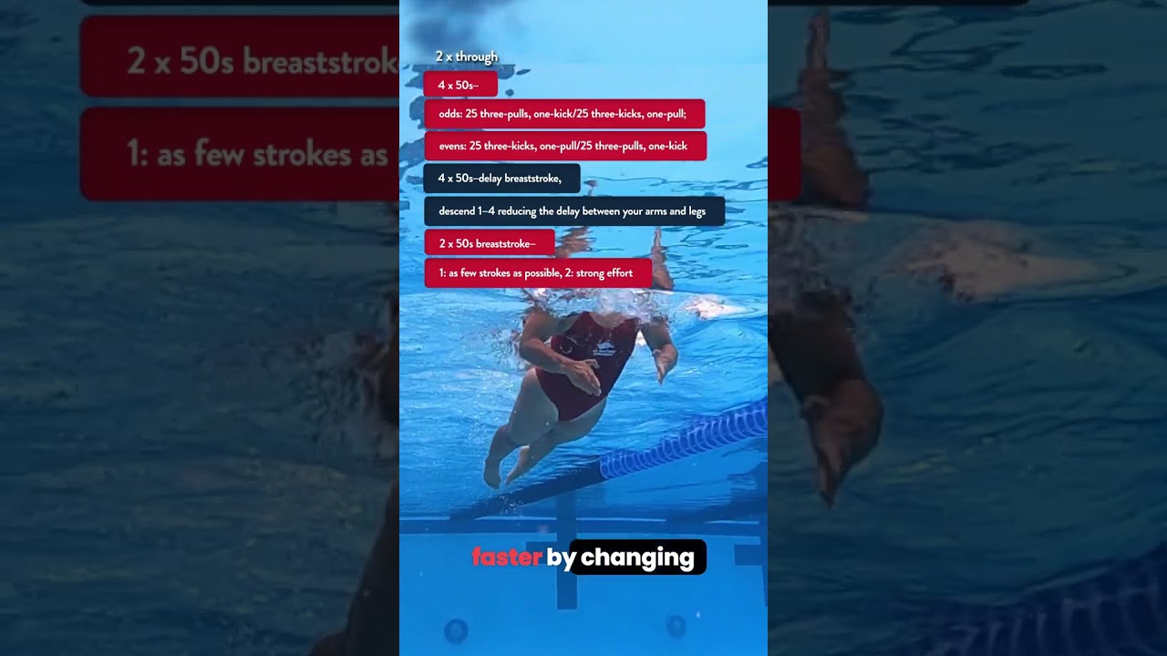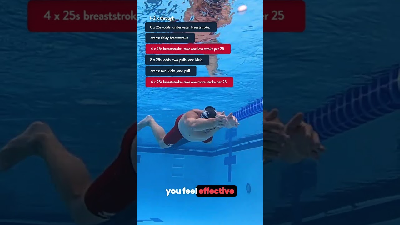 - 4 x 50s—delay breaststroke, descend 1–4 by reducing the delay between your arms and legs